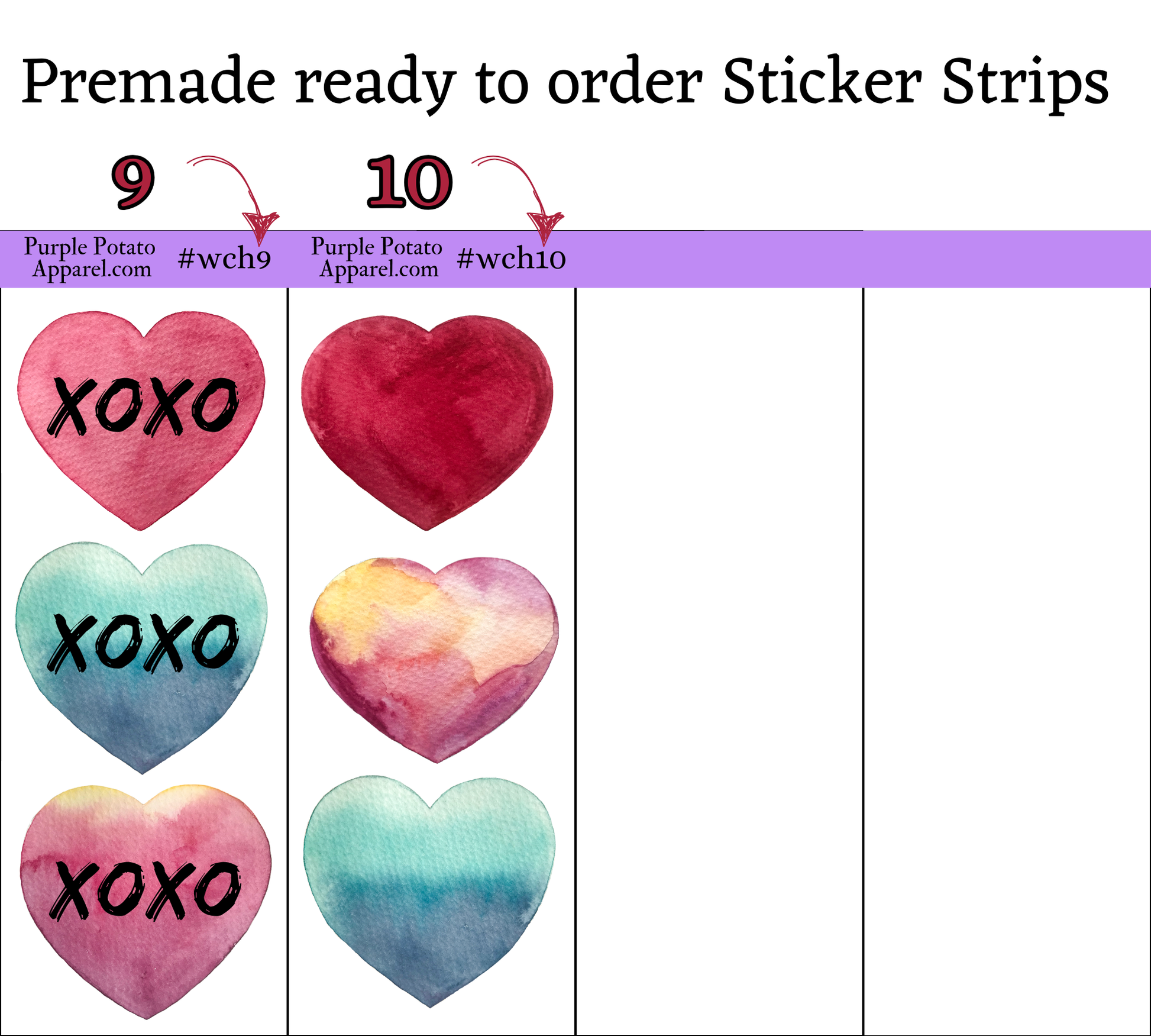 *Fully Customizable! You have the option to choose what color of hearts and what wordage, if any, goes on your sticker strip. Be as creative as you like!