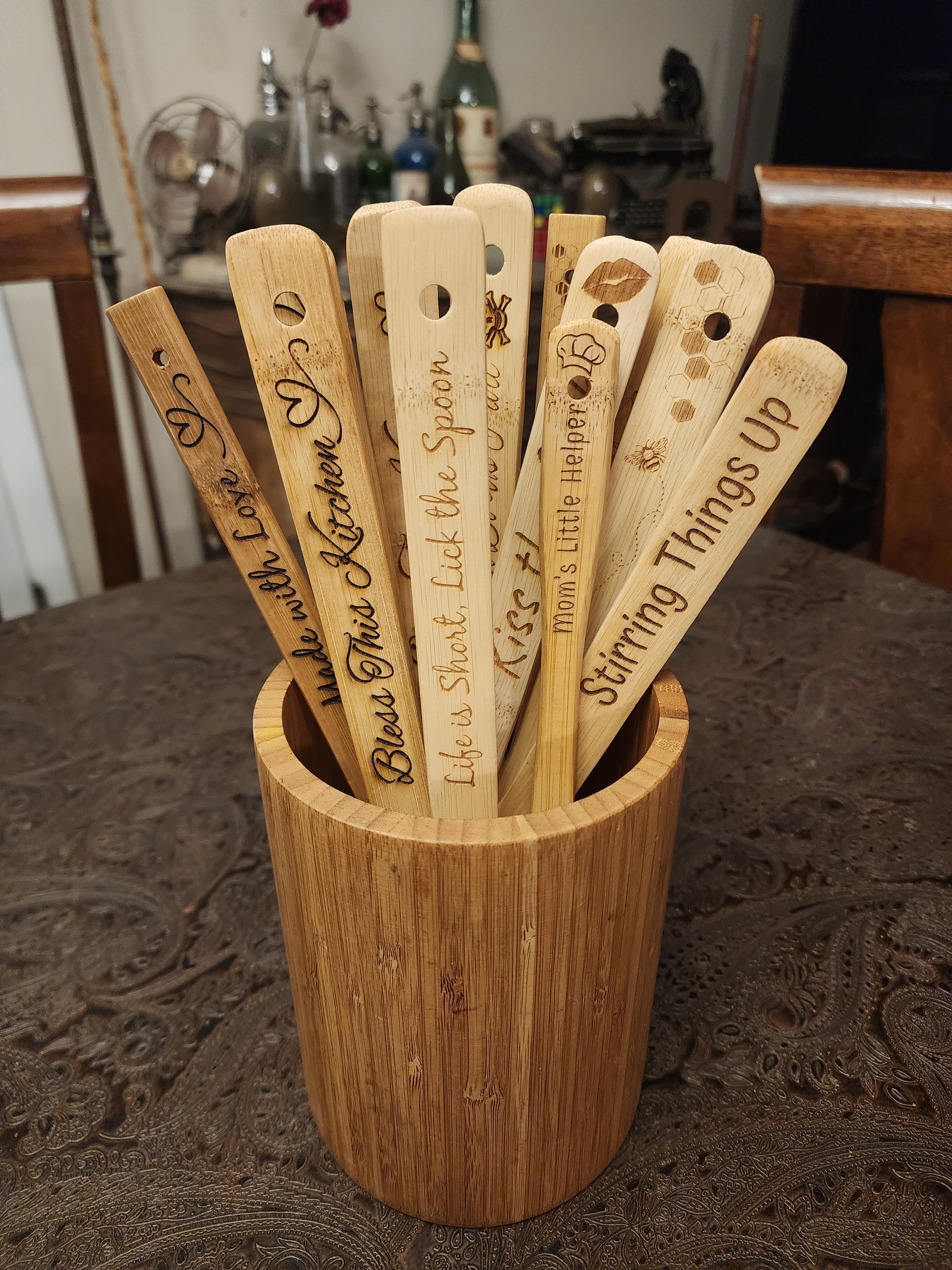 "Life is Short, Lick the Spoon" Bamboo Wooden Cooking Utensils. Kitchen