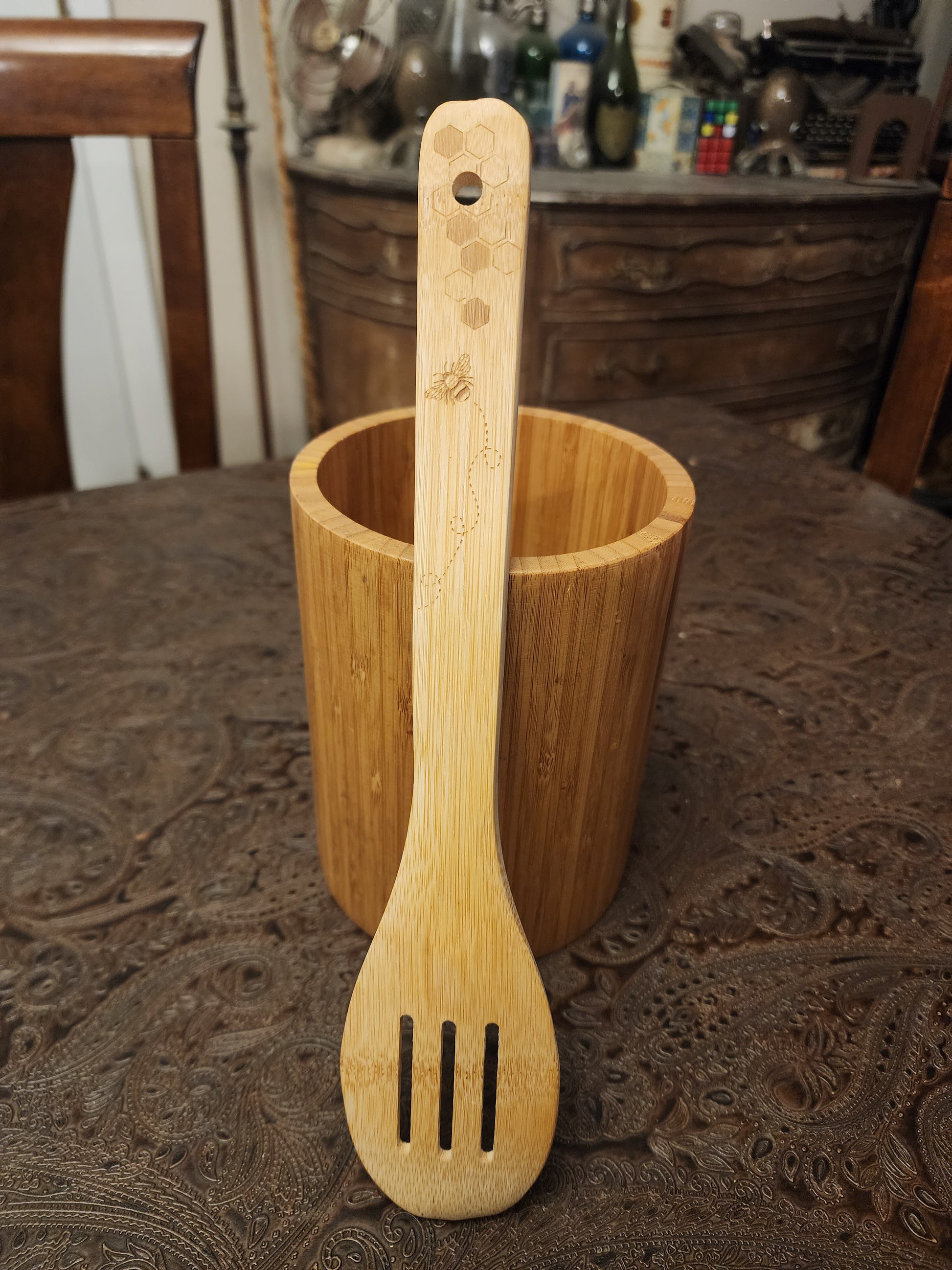 "Bees and Honeycombs design" Bamboo Wooden Cooking Utensils. Kitchen Spoon